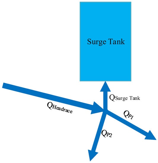 For the surge tank in Figure 11, it is possible to calculate the water flow into this ideal surge tank based on the area of the surge tank and rate of change of the surge tank water level as shown in the following formula:
