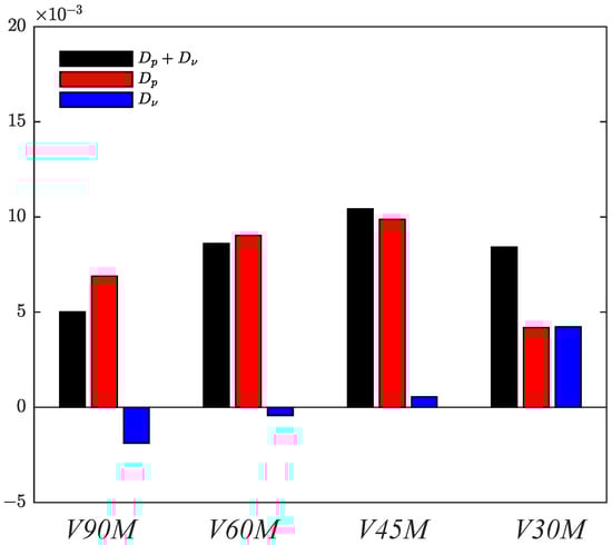 . The contributions of dispersive and turbulent components were similar to that of drag patterns. A remarkable difference was the increased