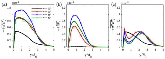 in RD than that in RB. Turbulent stresses for all V-shaped cases, displayed in