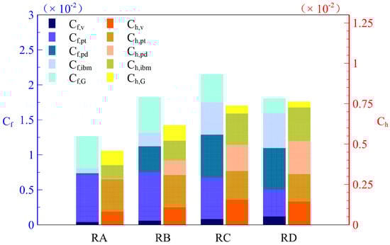 , which takes into account both friction velocity and temperature. RD exhibited the highest heat transfer efficiency, while RC had the largest