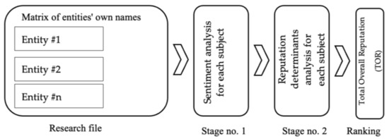 At this point, we considered it necessary to note that the used online reputation quantification methodology was the product of a decade of research. The first phase was carried out between 2013 and 2014, where we, as researchers, followed up on the work of practitioners and marketing experts on e-communication. The use of sentiment analysis (SA) procedures for the needs of academic research was primarily tested. Procedures were specified in the process of producing empirical material, which was presented to a wide professional public through numerous studies.