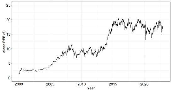 RED ELECTRICA stock closing prices from 3 January 2000 to 30 December 2022.