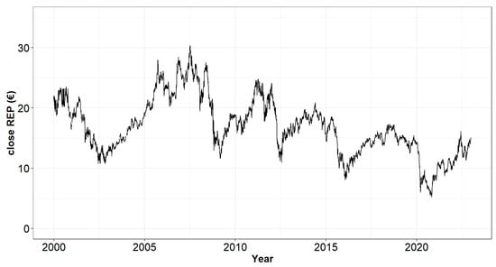 REPSOL stock closing prices from 3 January 2000 to 30 December 2022.