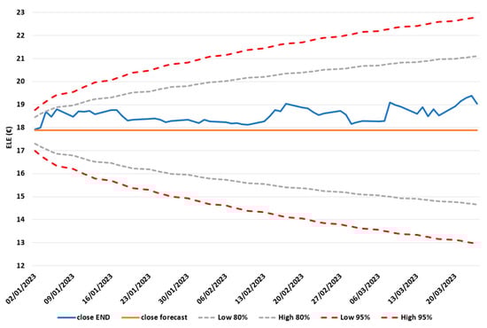 Third, time series models can be used to estimate the volatility of stock prices [55]. Volatility is an important factor in investment decision-making, as it can indicate the level of risk associated with a particular investment. Time series models can be used to estimate volatility and help investors make informed decisions about the level of risk they are willing to take on. Please also note that even in a market condition like the one of 2023, the models proposed can provide a confidence interval in which most of the closing stock prices will be in the three following months. The authors want to point out that these results should be interpreted with caution.