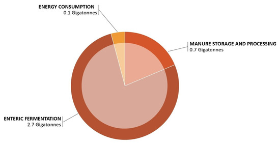 Over the years, the global livestock sector has grown in scale as the demand to feed the human population has also increased. Meat is an important source of nutrition in the world, and over the last 50 years, global production of meat has more than tripled, with current production at 340 million tons per year [1]. The direct implication derived from these livestock statistics is that larger farms have been established to support this mode of agriculture. However, several shortcomings are associated with the operation of large-scale livestock farms, despite their dominant role in supporting global food needs. One of these shortcomings regards the high generation of greenhouse gas (GHG) emissions from livestock agriculture [2].