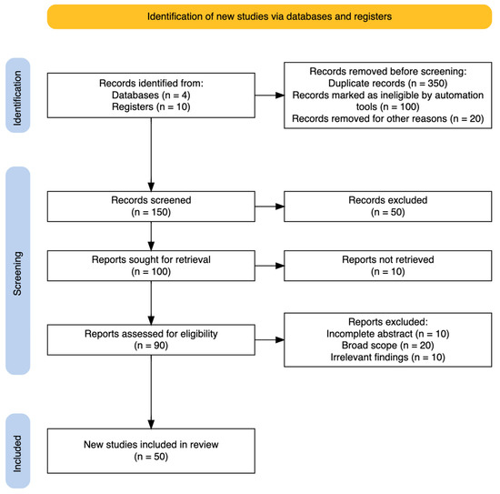 The second phase involved the development of the search strategy, where the parameters for the data search were specified, including the search keywords, databases, and inclusion and exclusion criteria guiding the study. The researcher identified scientific databases to obtain relevant articles, including Science Direct, MDPI, Springer Nature, and Sage. Thereafter, keywords were defined in order to facilitate the search for the relevant articles [18]. Aromataris and Riitano [18] argue that the definition of keywords and free-text words is the first formal step in the research, where they can be derived from article titles and abstracts as well as the literature. The keywords considered in this research included “innovations”, “capture”, “use”, “greenhouse gases”, “livestock farms”, “energy”, “production”, and “future directions.” The keywords were combined using the Boolean logic operators AND/OR in order to expand the scope of the search [19]. As a result, a wide range of resourceful articles were identified from the research.