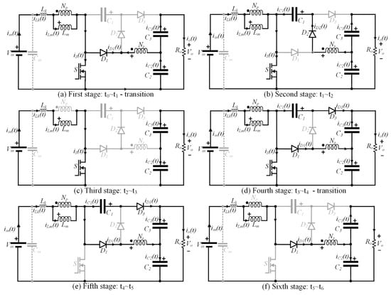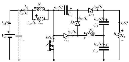 - Baek, J.-W.; Ryoo, M.-H.; Kim, T.-J.; Yoo, D.-W.; Kim, J.-S. High Boost Converter Using Voltage Multiplier. In Proceedings of the 31st Annual Conference of IEEE Industrial Electronics Society (IECON), Raleigh, NC, USA, 6–10 November 2005. [Google Scholar]