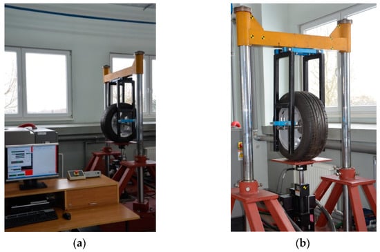 The article consists of five sections and is structured as follows. Section 2 describes the test object, the test stands, and the test methodology and process. Section 3 presents the results of the wheel tired and suspension tests on the test vehicle. The test results are analysed in Section 4. The conclusions are presented in Section 5.