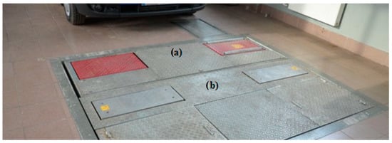 The suspensions (shock absorbers installed in the car) were tested on the Bosch Beissbarth diagnostic line (Figure 3). The line was equipped with two damping effectiveness testing stations SAT690 and SA640, operating based on the THETA (Table 3) and EUSAMA (Table 4) methods [46,47].