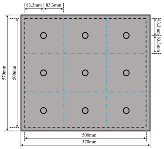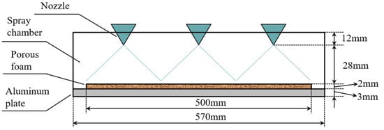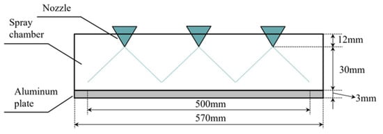 Based on the result of Gong et al. [24], the nozzle array should consist of nine nozzles, and the distance between each nozzle should be 166.66 mm, as shown in Figure 4. The characteristics of the nozzles used in the experiment are shown in Table 2.