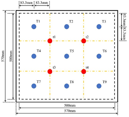 The center temperature is the average temperature of T1, T2, T3, T4, T5, T6, T7, T8, and T9 in Figure 14, and the margin temperature is the average temperature of t1, t2, t3, and t4 in Figure 14.