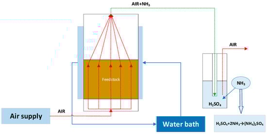 Thermal pre-treatment seems to be a promising solution, often integrated with other treatment methods. Research conducted by Gonzalez-Fernandez et al. [82] has shown that treating pig manure with a temperature of 170 °C for 30 min at a pressure of 7 bar increases methane production by 35%. For comparison, the same authors also pre-treated this substrate using a strong base, but the effect was an increase in methane efficiency by 13%. An interesting strategy was proposed by Rodriguez-Verde et al. [64], combining the thermal treatment of chicken manure at 90 °C with the simultaneous stripping of ammonia (Figure 6). Liquid manure, especially dust, is abundant in nitrogen, hence the removal prevents process inhibition. The solution of the researchers made it possible to reduce the content of ammonia in the substrate and increase its biodegradability.
