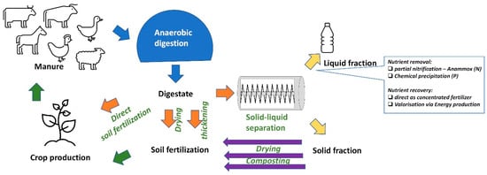 145. Sigurnjak, I.; Van Poucke, R.; Vaneeckhaute, C.; Michels, E.; Meers, E. Manure as a resource for energy and nutrients. In Biorefinery of Inorganics: Recovering Mineral Nutrients from Biomass and Organic Waste; Wiley Online Library: Hoboken, NJ, USA, 2020; pp. 65–82. [Google Scholar]