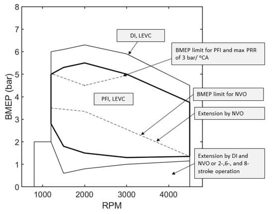 - Borgqvist, P.; Tunestal, P.; Johansson, B. Comparison of negative valve overlap (NVO) and rebreathing valve strategies on a gasoline PPC engine at low load and idle operating conditions. SAE Int. J. Engines 2013, 6, 366–378. [Google Scholar] [CrossRef]