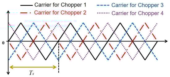 Triangular phase-shifted carrier signals and the corresponding chopper units.