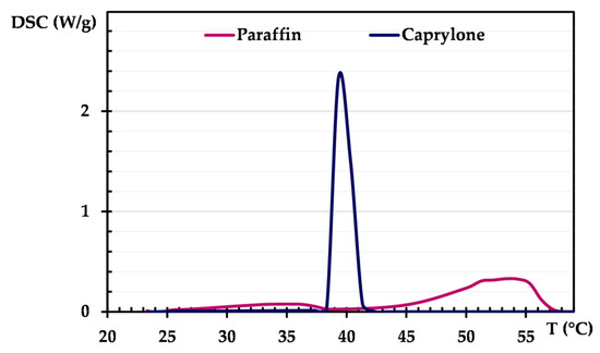 DSC curves for both paraffin and Caprylone samples.