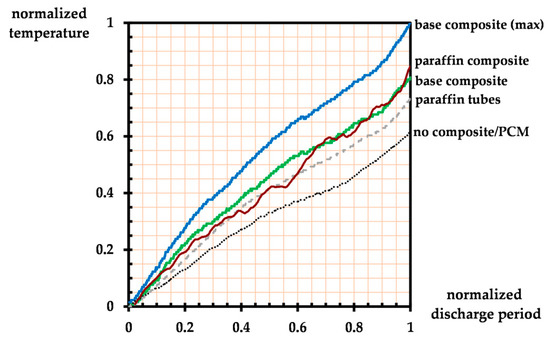 Temperature uniformity profile of PCM composites throughout the 1 C discharge.
