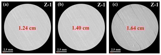 - After 24 h of water intrusion into the core samples, the ISCO pump pressure was removed first, and then the piston pump pressure was removed. The two core samples were taken out, and the surface moisture of the samples was wiped dry for the CT scan.