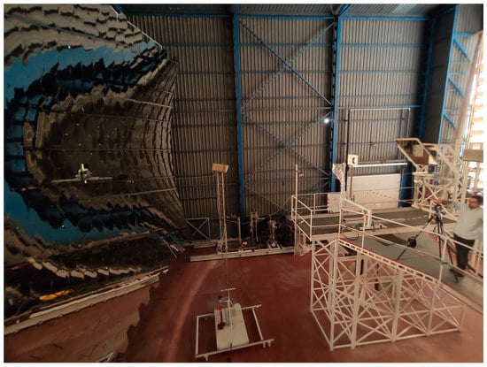 In this work, we used the data reported by PSA—Plataforma Solar de Almería [21] for the SF60 solar furnace recently renewed: z = 7800 mm and Ψ = 35.3° (the smallest of the two rim angles reported in Section 2.1); thus, the projected radius for the large paraboloid becomes 4963 mm.