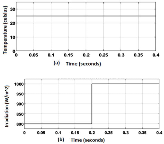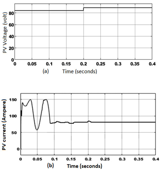 Figure 23. (a) Voltage waveform of PV and (b) current waveform of PV.