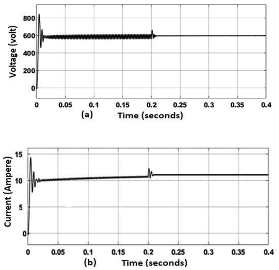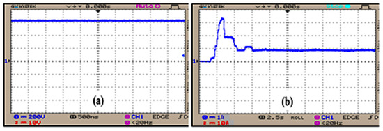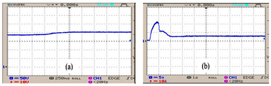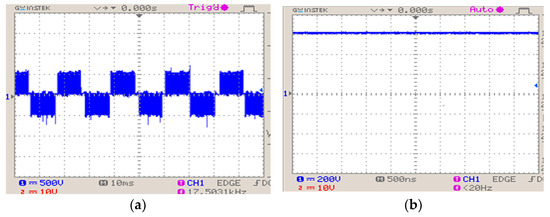 Figure 24. (a) Voltage waveform of converter and (b) current waveform of converter.