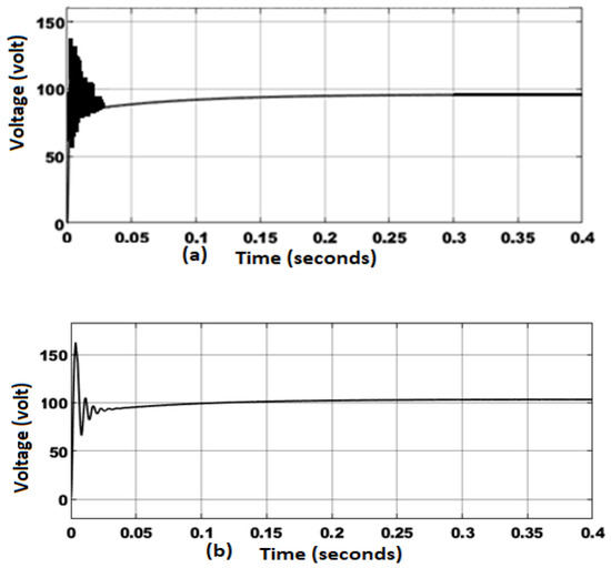 Figure 15. ESS output voltage waveform: (a) With PI controller and (b) with ANN controller.