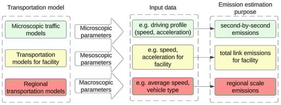 - For micro-scale traffic models, it is possible to aggregate the results of, for example, all vehicle trips into the average speed parameter, which can be used as an input for the macro-scale emission models.
