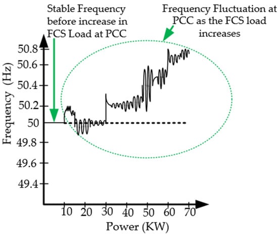 Frequency fluctuation at PCC as number of FCS loads increases [30].