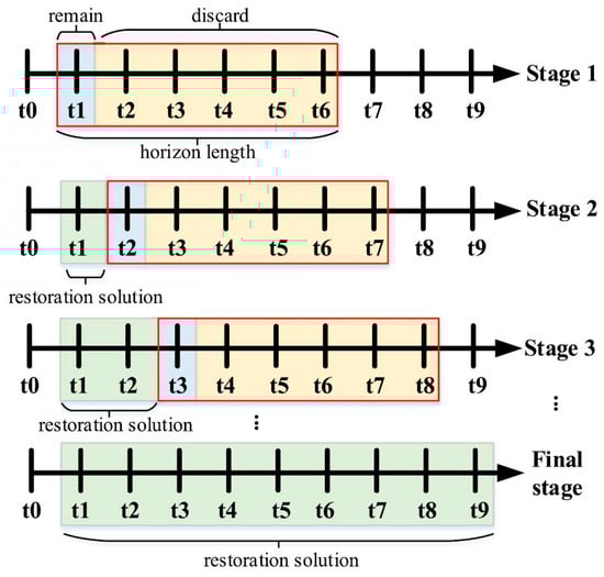- Chen, B.; Chen, C.; Wang, J.; Butler-Purry, K.L. Multi-Time Step Service Restoration for Advanced Distribution Systems and Microgrids. IEEE Trans. Smart Grid 2018, 9, 6793–6805. [Google Scholar] [CrossRef]