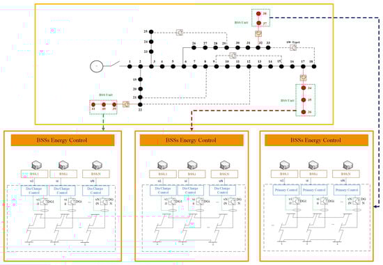 In modern smart distribution networks, BSSs have been developed to enhance the efficient functioning of the network, reduce carbon emissions, and optimize the use of DERs [1]. BSSs charge their batteries using their own renewable energy sources like solar panels and wind turbines or they can also draw power from the power grid/microgrid (MG). In the latter scenario, they have the ability to exchange power with the grid/MG. BSSs are capable of charging their stored batteries during periods of low electricity prices. They bring benefits to power grids/MGs as well. By employing battery-to-grid (B2G) capabilities, BSSs lower the operational costs of the grid/MG and can even provide spinning reserves for these systems [1]. The location of BSSs in a power system is a vital factor that affects the system’s operational expenses. It is crucial to identify the best position for BSSs. Furthermore, the placement of BSSs in the network can impact power quality and network reliability. However, it is noteworthy that the previous research studies have not extensively explored this aspect [2]. Therefore, the location of BSSs within a power system is a critical factor that affects operational costs. Identifying the optimal location for BSSs is essential, as it can impact power quality and network reliability. However, the previous research has not extensively investigated this aspect. Consequently, this study aims to evaluate the most appropriate locations for BSSs in the distribution network, considering technical factors such as power quality standards and reliability measures, as well as economic objectives. The subsequent section provides a comprehensive review of the previous studies conducted in this area.