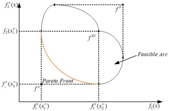 where, represents the number of objective functions, and x denotes the vector of decision variables. As evident from the expression above, all the objective functions are set to be minimized. As previously discussed, it is crucial to establish the ranges for the objective functions. To achieve this, the payoff matrix can be employed to calculate these values. To construct the payoff matrix, the problem is initially solved as a single-objective optimization problem to find optimal values for each for p objective function. These values are then used to calculate the single optimum values of the other objective functions and , respectively. The resultant payoff matrix is structured with rows representing various combinations of objective function values. For a more comprehensive understanding and access to the associated equations, please consult the provided reference. It should be noted that the remaining objective functions possess a single optimal value: