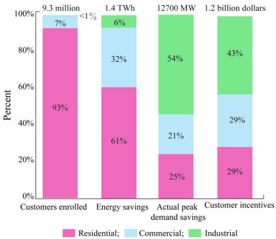 The electric power supply system serves a critical functionality in modern society. Its primary operational objective is to be able to match the generated power to the load demand at all times. Secure, reliable, economic, efficient and sustainable operation are other key objectives for power system operation. Traditionally, efforts to realize these technical and economic operational objectives have almost entirely concentrated on the supply side of the power system, that is, the whole electrical infrastructure that is involved in the generation, transmission and delivery of electrical power to the end-users [1]. Over the past few decades, however, attention has increasingly been given to the potential role that the demand side (i.e., the consumer of electricity) can play in the secure, reliable and efficient operation of the power system. The concept of demand-side management (DSM) largely originated in the U.S.A. in the 1970s, in response to growing energy security concerns as well as the environmental impact of electricity generation, especially nuclear power [2]. Its evolution was influenced by a combination of political, economic, social, technological and resource supply factors that significantly impacted the electricity sector’s operating environment and its outlook for the future [3]. The ensuing decades witnessed many developments, including the deregulation of the electric power supply industry that introduced competitiveness and a heightened focus on greater efficiency and economy of operation, the proliferation of decentralized and variable renewable energy generation integrated into the distribution network and technological advancements that spurred efforts to evolve the legacy electric grid into a modern smart grid [4,5,6]. In this context, DSM has been viewed as having the potential to play an increasingly important role in supporting the electric grid modernization efforts [7].