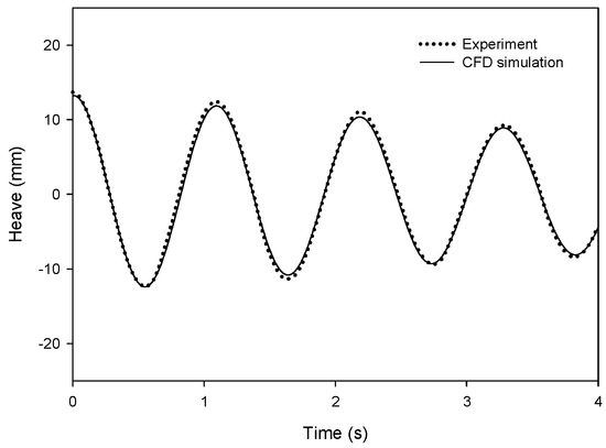 Comparison of experimental results with CFD simulation in the heave free decay test.