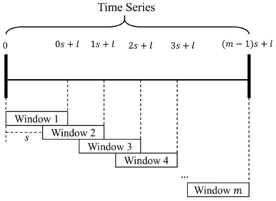 The lattice algorithm is also known as the sliding window method. The concept of the algorithm was proposed by Rubinger in 1974 for the first time []. Since it has the advantages of being simplified, easy, operable, practical, and accurate to implement, it has been successfully applied in many fields, such as speech recognition [], data processing [], and anomaly detection []. Figure 3 shows a simplified diagram of the lattice algorithm. s and l are the step and window sizes, respectively. The window pane of length l slides s to the next window.