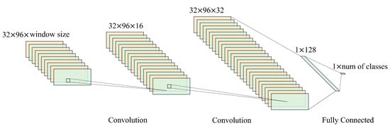 Convolutional neural networks (CNNs), often referred to as ConvNets or convolutional networks, represent a class of deep learning models specially designed for tasks involving grid-structured data, such as images [], video frames [], and spatially organized data. As shown in Figure 6, our CNN architecture incorporates convolutional and fully connected layers with appropriate activation functions for feature extraction and classification. It consists of two convolutional layers with ReLU activation. After the convolutional layers, there are two fully connected layers, with ReLU activation in the first and linear transformation in the second. The final layer produces the network output logit without an activation function.