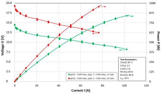 Operational behavior of the fuel cell stack at DLR with 20 and 15 cells [20].