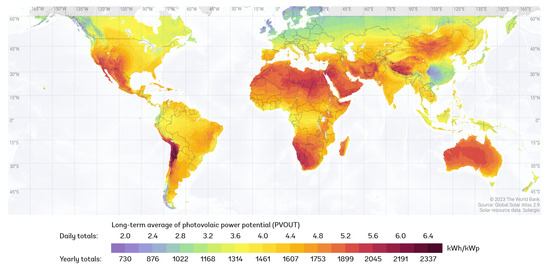 - ESMAP. Global Photovoltaic Power Potential by Country; Technical Report; The World Bank: Washington, DC, USA, 2020. [Google Scholar]