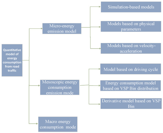 To achieve this goal, this paper will concentrate on synthesizing and analyzing research related to microscopic and mesoscopic energy consumption models. The microscopic and mesoscopic energy consumption models are shown in Figure 2. Through this approach, we hope to provide valuable insights into the underlying factors influencing energy consumption at these levels, facilitating more targeted interventions and improvements in energy efficiency within the road transportation sector.