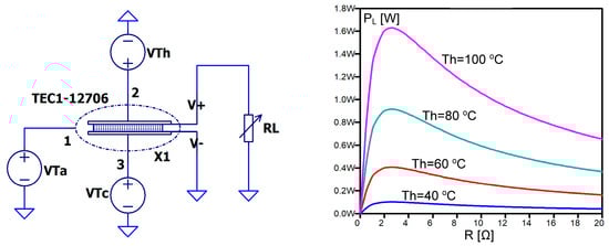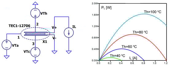 In the following subsections, a few important operations of the TEG TEC1-12706 are modeled. The obtained characteristics and results give a much deeper insight into the behavior of the thermoelectric converter than the data sheets provided by TEM manufacturers and allow for performance assessments in the various conditions that the TEG may face in real operating conditions.