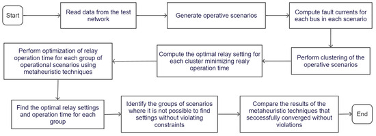 Finally, the performance of the four clusters obtained by each machine learning approach and metaheuristic technique are compared, to determine which one ensures the minimum relay operation time, offers system selectivity (does not violate any model constraint) and requires the lowest computational cost (shortest simulation time). Figure 2 illustrates the flowchart of the implemented methodology.