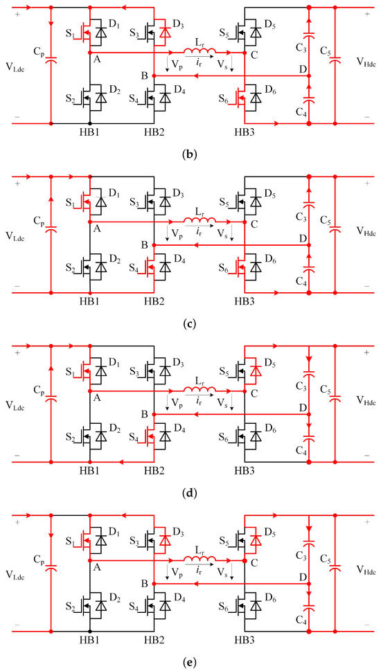 The working waveform of the circuit when the duty ratio of the primary side is less than 0.5 is shown in Figure 7. In reverse flow mode, the analysis process is similar to when is greater than 0.5.