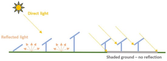 Schematic layout of shading problems in open field bifacial solar panel installation.