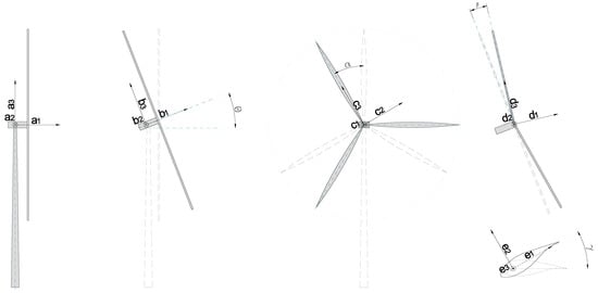 Since the accelerations and strain gauges should be expressed in the blades’ moving reference frame, in an approach similar to the one used by Tcherniak and Schwaab [], the rotation matrices that relate a given reference frame to the next are needed, namely: