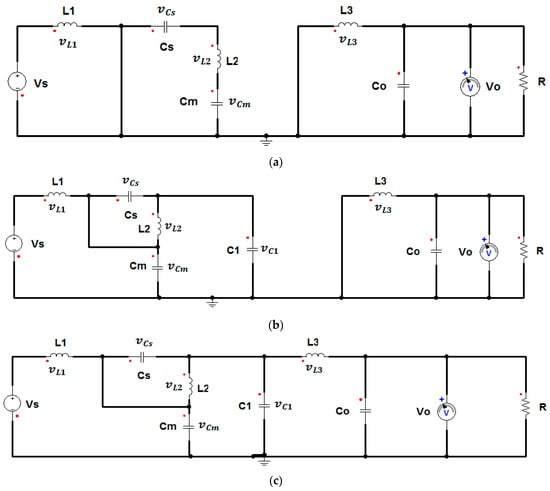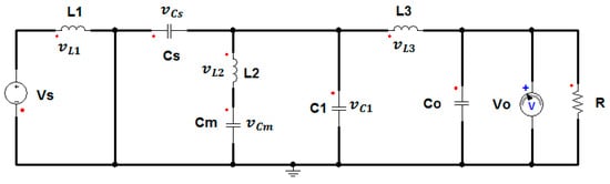 v L 1 = L 1   d i 1 d t = V s v C m                                     v L 2 = L 2   d i 2 d t = v C s = v C 1 v C m v L 3 = L 3   d i 3 d t = V o