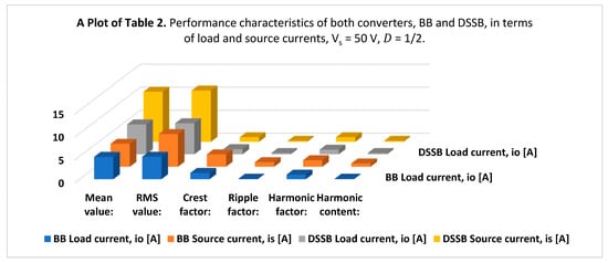For a better understanding of the dynamic and static behavior of the DSSB, let us assume that a pure DC voltage, Vs, is provided at the DSSB input to supply a resistive load of 10 that represents a heater in an electric drive (tramway). As shown during the mathematical analysis and simulation, the purpose of the additional LC components is to aid in reducing the ripple of the output current and voltage, and correspondingly, the input current and voltage.