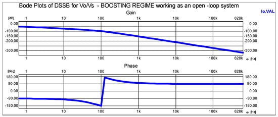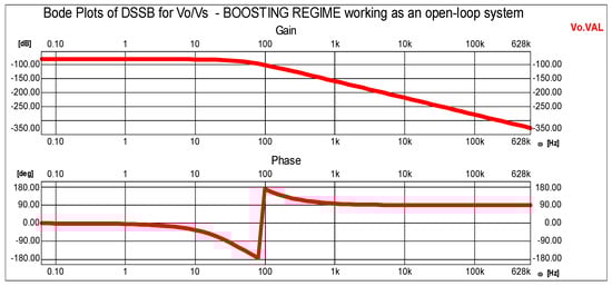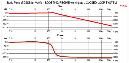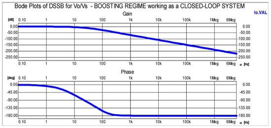 Figure 15. Bode plots of the DSSB representing the voltage gain Vo/Vs during the boosting regime—closed-loop system.