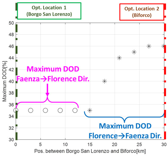For the return trip (from Faenza to Florence), the maximum DOD is almost doubled (about 35%). The proposed solution, in this case, is suboptimal; however, the residual autonomy granted by the storage system is large enough to ensure a reliable service and the robust behavior of the system.