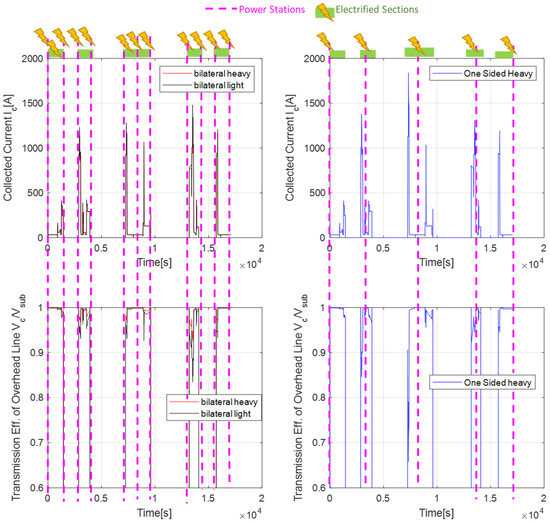 The collected currents are compatible with the usage of the standard railway DC pantographs since their peak values are under 2000 [A], which is considered the maximum limit.