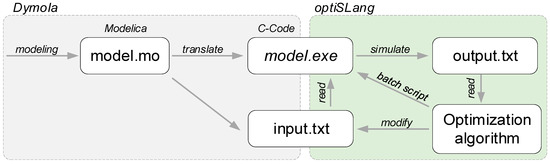 Basic principle of the workflow for coupling Dymola and optiSLang.