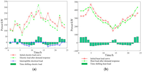 From Equation (6), it is clear that the total transferable electric or thermal load in a dispatching period is 0, which means that the total loads transferred in and out of the system are equal.